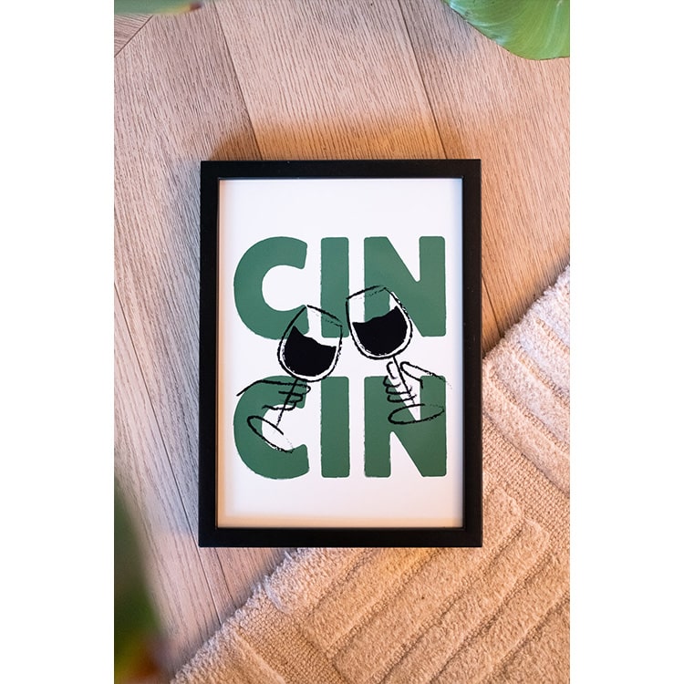 Poster – Cin Cin groen behoort tot onze keuken posters. De poster is erg leuk te combineren met andere keuken posters, maar ook met printjes om er een rustig geheel van te maken. Perfect om je keuken op te pimpen!