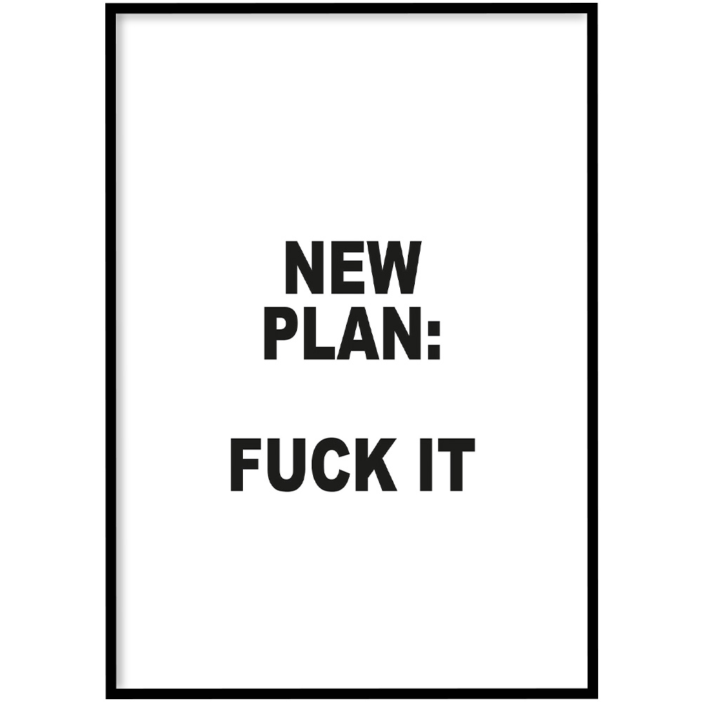 De poster New plan is onderdeel van onze collectie kantoor posters. Een fijne werkplek zorgt voor meer focus en plezier tijdens je werkdag. Of je nu je kantoor op de zaak wilt opfrissen of je thuiswerkplek wat meer sfeer wilt geven, deze print is daar perfect voor. Deze ontwerpen zijn goed te combineren met onze andere motivatieposters voor een professioneel geheel aan de muur.
