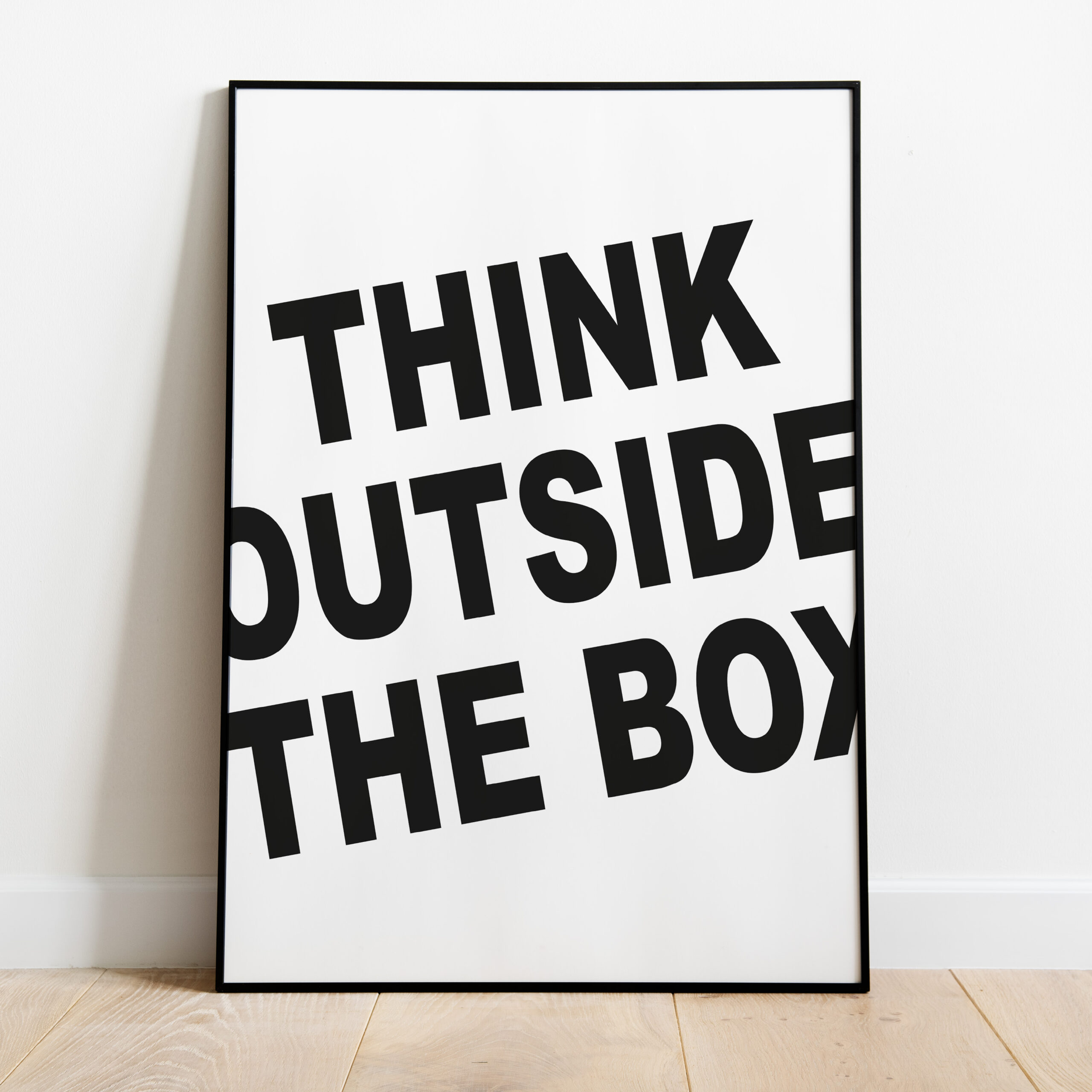 De poster Outside the box is onderdeel van onze collectie kantoor posters. Een fijne werkplek zorgt voor meer focus en plezier tijdens je werkdag. Of je nu je kantoor op de zaak wilt opfrissen of je thuiswerkplek wat meer sfeer wilt geven, deze print is daar perfect voor. Deze ontwerpen zijn goed te combineren met onze andere motivatieposters voor een professioneel geheel aan de muur.