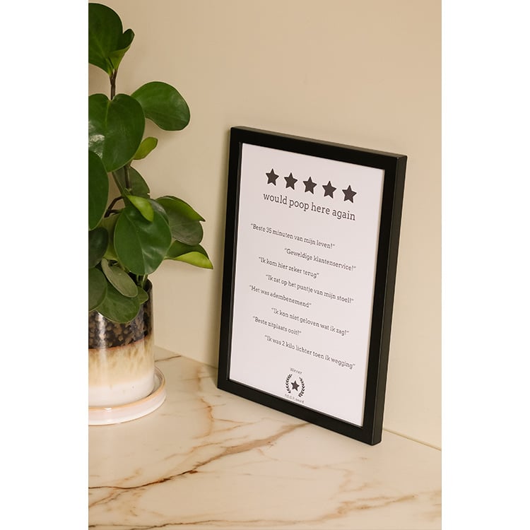 De poster toont een uniek en grappig ontwerp dat zeker een gespreksonderwerp zal zijn voor je gasten. Of het nu gaat om een humoristische tekst, een komische illustratie of een grappige combinatie van beide, deze poster heeft het allemaal. Het is de perfecte manier om een luchtige sfeer te creëren en je bezoekers te verrassen met een onverwachte twist in de toiletruimte.