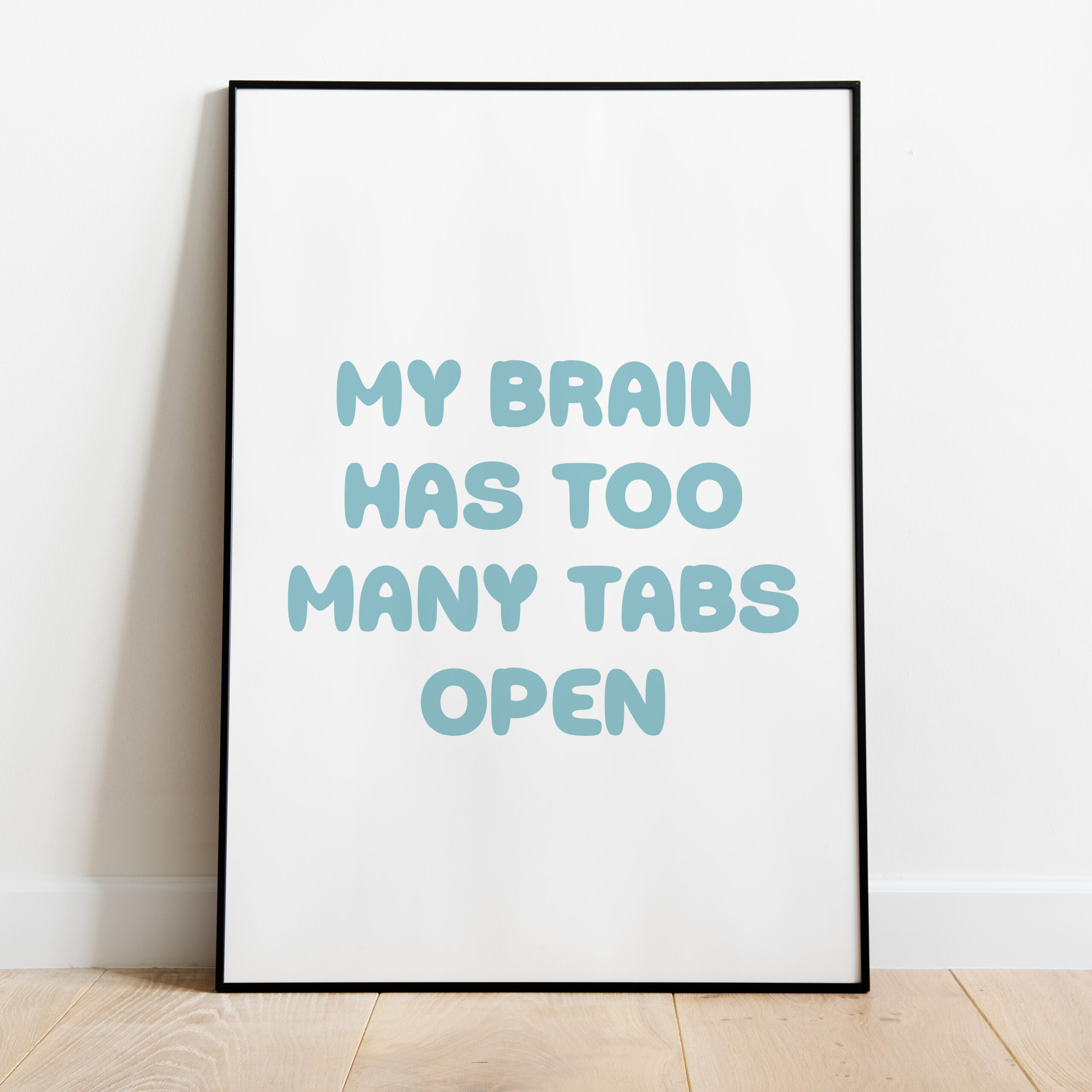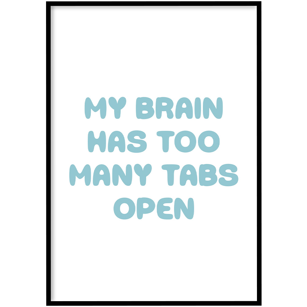 De poster Too many tabs open blauw is onderdeel van onze collectie kantoor posters. Een fijne werkplek zorgt voor meer focus en plezier tijdens je werkdag. Of je nu je kantoor op de zaak wilt opfrissen of je thuiswerkplek wat meer sfeer wilt geven, deze print is daar perfect voor. Deze ontwerpen zijn goed te combineren met onze andere motivatieposters voor een professioneel geheel aan de muur.